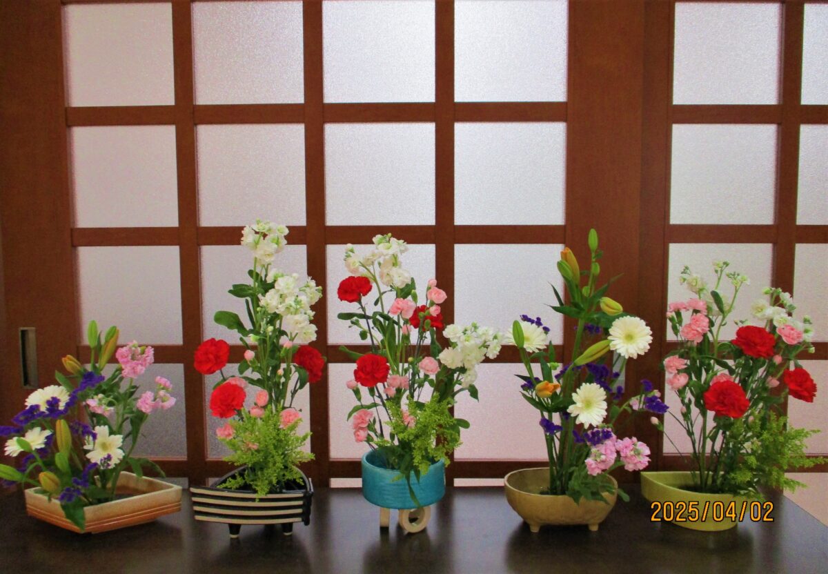 春を感じる生け花を皆さん自分のお部屋やユニットのリビングに飾られます。