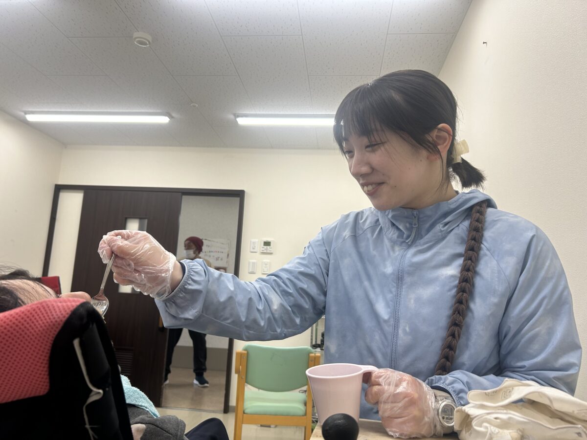 藤條:利用者さんと関わる時は楽しいです。最初は声をかけても反応が薄くてちょっと不安でしたが、関わりを続けていくうちに利用者さんから声をかけてくれた時に「私を受け入れてくれたんだ」と感じれてうれしかったです。不安なこともあります。初めて後輩ができたので、ちゃんと先輩ができるのか不安です。